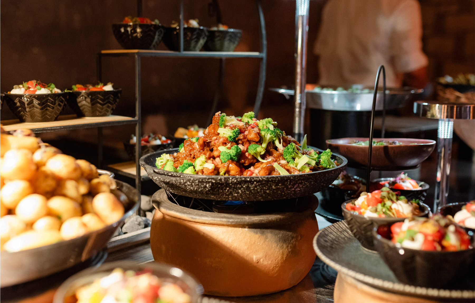 Whether you envision an elegant buffet, a communal sharing concept, or a refined à-la-carte experience, our culinary offerings are designed to suit your event’s unique style. We also provide full bar and beverage services, including sophisticated cocktail creations, ensuring a complete and memorable dining experience.